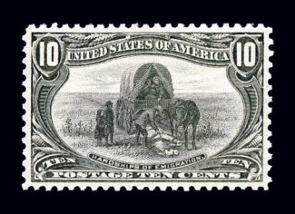 392 nh 290 image#290, 10c Trans-Mississippi, precisely centered, deep luxuriant color and a well defined impression on wonderfully fresh paper, o.g., n.h., extremely fine; seldom encountered in this premium never hinged condition; 1998 PF certificate. (Image) $425.00