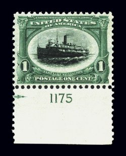 398 nh 294 image#294, 1c Pan-American, bottom plate no. 1175 single, precisely centered, lovely rich colors, pristine o.g., n.h., extremely fine and handsome; 2001 PF certificate (Image) $45.00