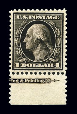 489 og 342 image#342, $1.00 Violet brown, gem bottom margin partial imprint single, possessing near perfect centering within large margins, gorgeous intense color and a prooflike impression, o.g., faintest trace of a hinge mark (if at all), extremely fine; a most eye-appealing stamp; photocopy of a 1987 PF certificate for an imprint pair, this being the right stamp (never hinged by omission). (Image) $525.00