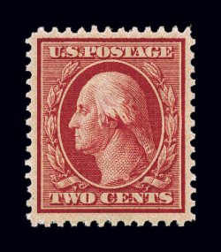 496 nh 358 image#358, 2c Carmine on bluish paper, pristine mint single, exceptionally well centered within large margins, extraordinarily deep rich color, immaculate o.g., n.h., extremely fine gem; photocopy of a 2000 PF certificate for a block of eight, this being the top left stamp. (Image) $190.00