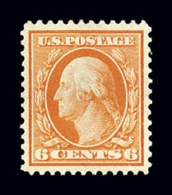 499 og 362 image#362, 6c Red orange on bluish paper, a gorgeous mint single in a quality which is rarely encountered, being absolutely perfectly centered within uncharacteristically large margins, additionally it possesses a marvelous overall freshness which few others can boast, intense color completely unaffected by oxidization, o.g., lightly hinged, extremely fine; actually a very rare stamp in this gem condition; 1985 PF certificate. (Image) $1,500.00