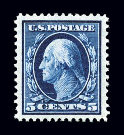 513 nh 378 image#378, 5c Blue, extravagantly large margins all around and being wonderfully well centered within them, gloriously rich color, pristine o.g., n.h., extremely fine; a large-margined gem; 2001 PF certificate and a 2005 PSE certificate (XF-Superb 95); ex-Jarrett. (Image) $67.50