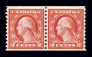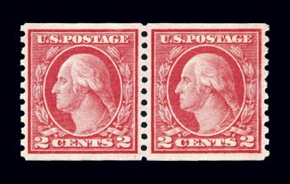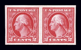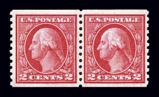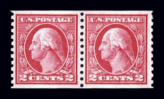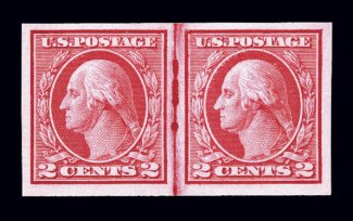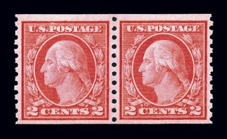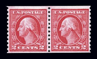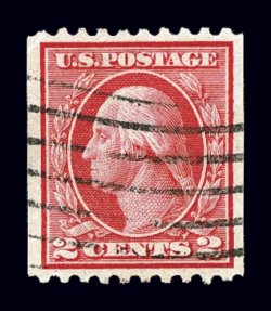#459, 2c Carmine imperforate coil, a gem example