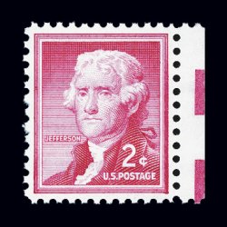 738 nh 1033a image#1033a, 2c Carmine rose on silkote paper, right sheet-margin single, exceptionally well centered, bright and fresh, o.g., n.h., extremely fine; a choice quality example of this scarce modern variety; 1999 PF certificate. (Image) $600.00
