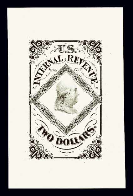 941 E Turner Essay 37b imageTurner Essay 37b, $2.00 Franklin, complete engraved die essay, black on white glazed paper, 49x75mm, fresh and bright, extremely fine and handsome. (Image) Est. 200-300