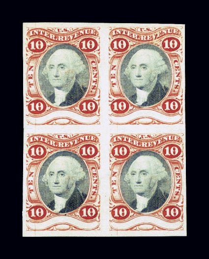 945 Ebl Turner Essay 59A imageTurner Essay 59A, 10c Design without title, plate essay with frame in red and vignette in ultramarine on white wove paper, block of four, well clear to large margins all around, fresh and bright, very fine and attractive (Image) Est. 200-300