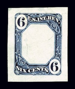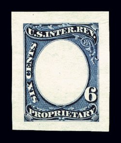 965 E Turner Essay 85 imageTurner Essay 85, 6c Blue, die essay of frame on India paper, 26x32mm, internal tears carefully silked to retain its very fine appearance, very rare; ex-Joyce. (Image) Est. 200-300