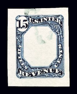 966 E Turner Essay 87 imageTurner Essay 87, 15c Blue, die essay of frame on India paper, 26x35mm, thinned at top as usual, as virtually all frame die proofs on India have faults, otherwise very fine appearance and very rare; ex-Joyce. (Image) Est. 200-300