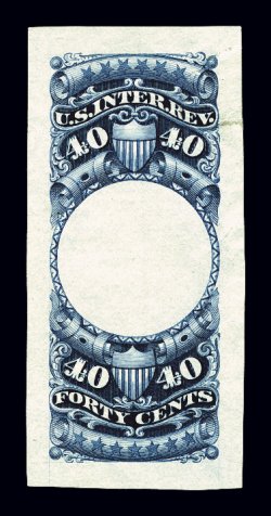 969 E Turner Essay 91 imageTurner Essay 91, 40c Blue, die essay of frame on India paper, 26x54mm, excellent color and impression, couple of closed tears at top right, quite typical as nearly all die essays of the frames have faults, very fine appearance and very rare; noted in Joyce that this is probably the only known example; ex-Joyce. (Image) Est. 200-300