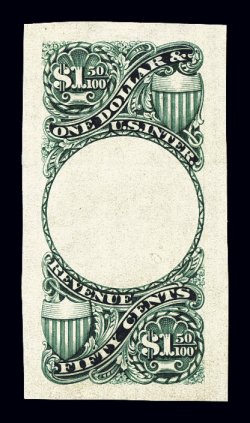 971 E Turner Essay 97 imageTurner Essay 97, $1.50 Blue green, die essay of frame on India paper, 29x53mm, exceptionally attractive essay with bright strong color on especially clean paper, couple of trivial India flaws that are of no significance and being in a condition far superior to to the vast majority of these India die essays, extremely fine and very rare; probably the only known example; ex-Joyce. (Image) Est. 300-400