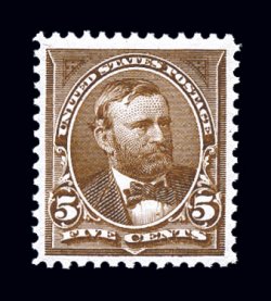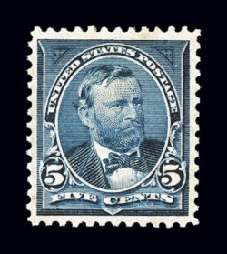 395 nh 281 image#281, 5c Dark blue, wonderfully well centered within large margins, rich color, o.g., n.h., extremely fine; a choice mint single; 2005 PSE certificate (XF 90). (Image) $87.50