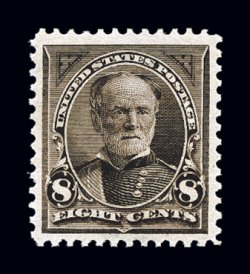 384 nh 272 image#272, 8c Violet brown, uncharacteristically well centered within impressively large margins, strong rich color, o.g., n.h., extremely fine; an especially choice and well margined single; 2002 and 2005 PSE certificates (latter grading XF 90). (Image) $180.00