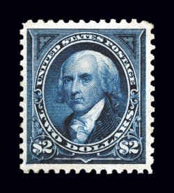 390 og 277 image#277, $2.00 Bright blue, well centered within large margins, rich luxuriant color and a well incised impression on bright white paper, o.g., lightly hinged, extremely fine for this; 1991 PF and 2005 PSE certificates. (Image) $1,100.00