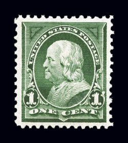 392 nh 279 image#279, 1c Deep green, exceptionally well centered within large margins, deep vibrant color, o.g., n.h., extremely fine; 2005 PSE certificate (XF 90). (Image) $22.00