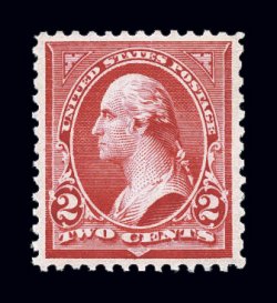 393 nh 279Bf image#279Bf, 2c Carmine, Ty. IV, exceedingly well centered, bright fresh color, o.g., n.h., extremely fine; this is actually the first gem example of this shade we have ever offered; 2005 PSE certificate (XF 90). (Image) $24.00