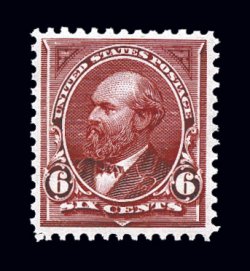 396 nh 282 image#282, 6c Lake, exceedingly bright and fresh, nicely centered, o.g., n.h., choice very fine; photocopy of a 2003 PF certificate for a pair, this being the right stamp (top selvage subsequently removed). (Image) $120.00