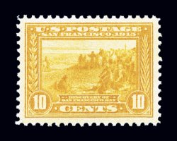 481 nh 400 image#400, 10c Panama-Pacific, orange yellow, marvelously well centered within rather large margins, incredibly bright and fresh, o.g., n.h., extremely fine; a choice stamp; 2004 PF certificate and a 2005 PSE certificate (XF 90). (Image) $325.00