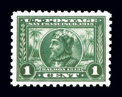 483 nh 401 image#401, 1c Panama-Pacific, perf. 10, marvelously well centered within large margins, beautiful rich color and a sharp impression on bright white paper, pristine o.g., n.h., an extremely fine gem; 2001 PSE certificate for a block of four, this being the bottom left stamp, and a 2005 PSE certificate for the single (XF-Superb 95). (Image) $60.00