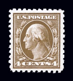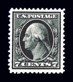 486 og 404 image#404, 10c Panama-Pacific, perf. 10, an extraordinarily choice mint example of this high value, possessing lavishly large margins all around and being precisely centered within them; gorgeous rich color and a crisp detailed impression on fresh paper, o.g., very lightly hinged, extremely fine; a rare stamp in this outstanding quality; 2005 PSE certificate (XF-Superb 95). (Image) $875.00