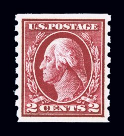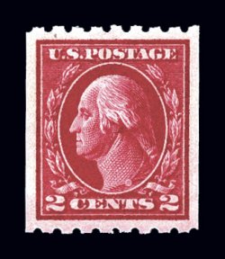 489 nh 413 image#413, 2c Carmine coil, Ty. I, perf. 8 1/2 vert., excellent centering, deep rich color, o.g., n.h., extremely fine; 2002 PSE certificate (XF 90). (Image) $120.00