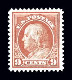 491 nh 415 image#415, 9c Salmon red, exceedingly well centered within unusually large margins, brilliantly fresh color and paper, o.g., n.h., extremely fine; 2000 PF certificate and a 2005 PSE certificate (XF 90). (Image) $120.00
