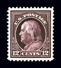 493 nh 417 image#417, 12c Claret brown, an magnificent quality mint single, featuring absolutely perfectly balanced margins all around, in addition its color is especially rich and luxuriant, while its impression is well incised on fresh paper, the reverse sports immaculate o.g. that has never been hinged, simply superb; a striking gem that is sure to realize impressive multiples of its catalog value; 1999 PF certificate and a 2005 PSE certificate (Superb 98). (Image) $110.00