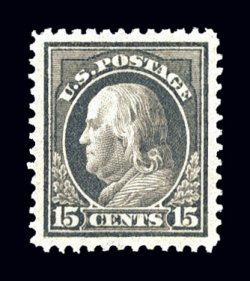 494 nh 418 image#418, 15c Gray, a superlative mint single, possessing flawless centering amid uncommonly large margins, its color is also out of the ordinary, being a sumptuously rich shade, crisp detailed impression, unblemished o.g., n.h., an extremely fine gem whose equal would be quite a challenge to find; 2001 PF certificate and a 2002 PSE certificate (Superb 98). (Image) $190.00