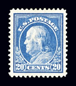 495 og 419 image#419, 20c Ultramarine, incredibly well centered within incredibly large margins (the largest we have ever seen on this value), deep vibrant color and an intense prooflike impression on fresh white paper, o.g., lightly hinged, an extremely fine gem; 2002 PSE certificate (Superb 98). (Image) $200.00