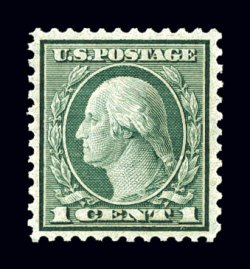 564 nh 545 image#545, 1c Green coil waste, perf. 11, very well centered within large margins which is most unusual on this always difficult coil waste stamp, strong rich color, o.g., n.h., extremely fine for this; 1997 PF and 2005 PSE certificates. (Image) $425.00