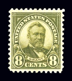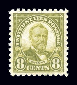 579 nh 589 image#589, 8c Olive green, extraordinarily large and well balanced margins all around, sumptuously rich color and a crisp impression, unblemished o.g., n.h., extremely fine; an uncommonly choice example; 2005 PSE certificate (XF-Superb 95 Jumbo). (Image) $57.50