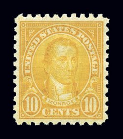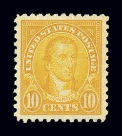 580 nh 591 image#591, 10c Orange, exceedingly well centered and margined, deep vibrant color, o.g., n.h., an extremely fine gem; 2004 PF certificate and a 2005 PSE certificate (XF-Superb 95). (Image) $125.00