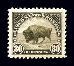 571 nh 569 image#569, 30c Olive brown, impressively large margins all around and being extraordinarily well centered within them, sumptuously rich color, o.g., n.h., an extremely fine large-margined gem; 2005 PSE certificate (XF-Superb 95 Jumbo). (Image) $62.50