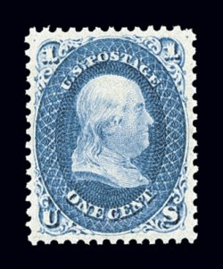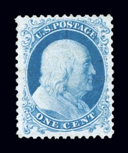 231 nh 63 image#63, 1c Blue, a fabulous quality mint example, being in a condition that few others can match, possessing flawless centering amid uncommonly large and exceptionally well balanced margins, plus it color is beautifully rich with an outstanding impression, the reverse is equally impressive, featuring pristine o.g. that has never been hinged, an extremely fine gem for the most demanding collector; 2003 PF and 2005 PSE certificates. (Image) for hinged $350.00