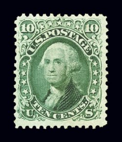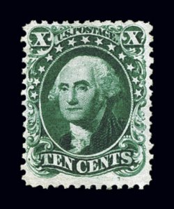225 og 43 image#43, 10c Blue green reprint, without gum as issued, sumptuously rich color and an unusually clean impression on fresh paper, far better centering than normally encountered, very fine; only 516 sold; 1979 PF certificate and a 2005 PSE certificate (F 70). (Image) $3,000.00