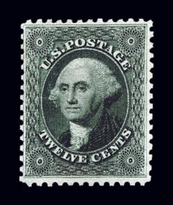 235 og 69 image#69, 12c Black, uncharacteristically well centered and margined, strong color and a clean impression, full o.g., a very fine example of this difficult mint stamp; 1982 and 2002 PF certificates, and a 2005 PSE certificate. (Image) $2,000.00