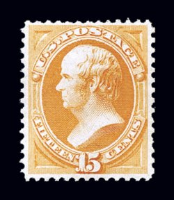303 og 163 image#163, 15c Yellow orange, extraordinarily bright and fresh, well centered and margined, o.g., lighlty hinged, a very fine example of this elusive stamp; 2002 PF certificate. (Image) $2,750.00