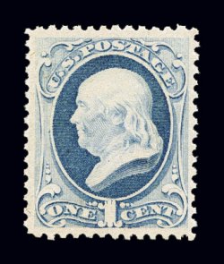 308 nh 182 image#182, 1c Dark ultramarine, a choice "post office" fresh mint single, excellent centering within uncharacteristically large margins, rich color, pristine o.g., never hinged, extremely fine; 2002 PF and 2005 PSE certificates. (Image) for hinged $350.00