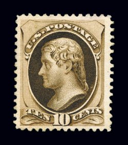 301 og 161 image#161, 10c Brown, a highly desirable mint example of one of the most difficult of all the Bank Note stamps to find in premium quality, as this copy is uncommonly well centered within extraordinarily large margins, sumptuously rich color and a crisp impression, full o.g., lightly hinged, extremely fine; 1999 PF certificate. (Image) $1,200.00