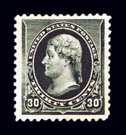 342 og 228 image#228, 30c Black, excellent centering within extra-large margins which are seldom encountered on this stamp, deep color and impression, o.g., lightly hinged, extremely fine; 1992 PF certificate and a 2004 PSE certificate (XF 90). (Image) $425.00