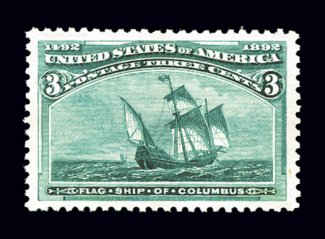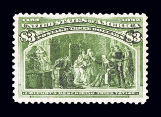 357 og 243 image#243, $3.00 Columbian, well centered within large margins, rich color, o.g., lightly hinged, very fine; 2003 PF and 2005 PSE certificates. (Image) $1,900.00