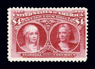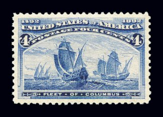 358 og 244 image#244, $4.00 Columbian, bright fresh color, nicely centered, o.g., lightly hinged, very fine; 1994 and 2004 PSE certificates. (Image) $2,600.00