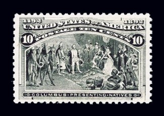 351 nh 237 image#237, 10c Columbian, very well centered within wide margins, exceedingly bright and fresh, o.g., n.h., extremely fine; 2005 PSE certificate (XF 90). (Image) $325.00