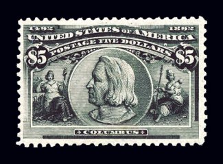 359 og 245 image#245, $5.00 Columbian, well centered within extra-large margins, strong color and impression, o.g., lightly hinged, a very fine example of this popular high value; 2005 PSE certificate. (Image) $3,000.00