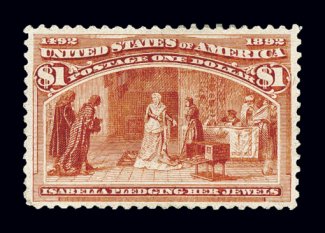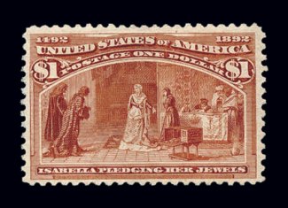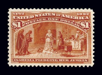 283 og 241 image#241, $1.00 Columbian, exceedingly well centered, deep vibrant color and a crisp detailed impression, o.g., extremely fine; 2001 PF certificate. (Image) $1,200.00
