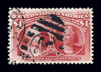 295 O 244 image#244, $4.00 Columbian, used, nicely centered within large margins, attractive color, neat duplex cancel, very fine; 1989 PF certificate. (Image) $1,300.00