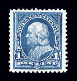 301 nh 247 image#247, 1c Blue, premium quality mint example, excellent centering within especially wide margins, wonderfully fresh color on immaculate white paper, o.g., n.h., extremely fine; 1999 PF certificate. (Image) $200.00