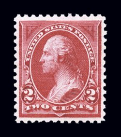 303 og 249 image#249, 2c Carmine lake, Ty. I, incredibly well centered within considerably larger margins than typically encountered, deep luxuriant color, o.g., certificates specifically states "never hinged", however since the issuance of the certificate the gum has become slightly glazed in a few spots, extremely fine; clear 1995 PF certificate. (Image) $175.00