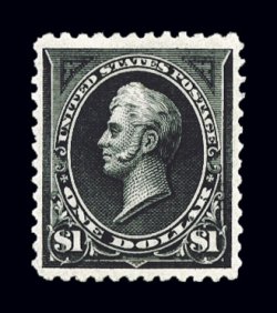314 og 261A image#261A, $1.00 Black, Ty. II, a highly desirable mint example of this scarce and challenging stamp, excellent centering within large margins, deep color and an intense impression on brilliantly white paper, o.g., lightly hinged, extremely fine; 1984 and 2000 PF certificates. (Image) $2,300.00