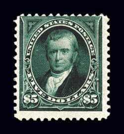 318 og 263 image#263, $5.00 Dark green, deep intense color and impression, centered to the top, o.g., a sound and fine example of this very scarce high value; 2002 PSE certificate. (Image) $5,000.00
