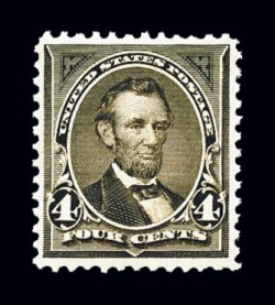 320 nh 269 image#269, 4c Dark brown, deeply rich color and a strong impression, very well centered, o.g., n.h., extremely fine; 2002 PSE certificate for a block of four, this being the bottom left stamp. (Image) $125.00